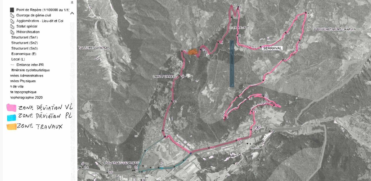 Une déviation est prévue pour les Véhicules légers et les Poids Lourds. (voir arrêté départemental)