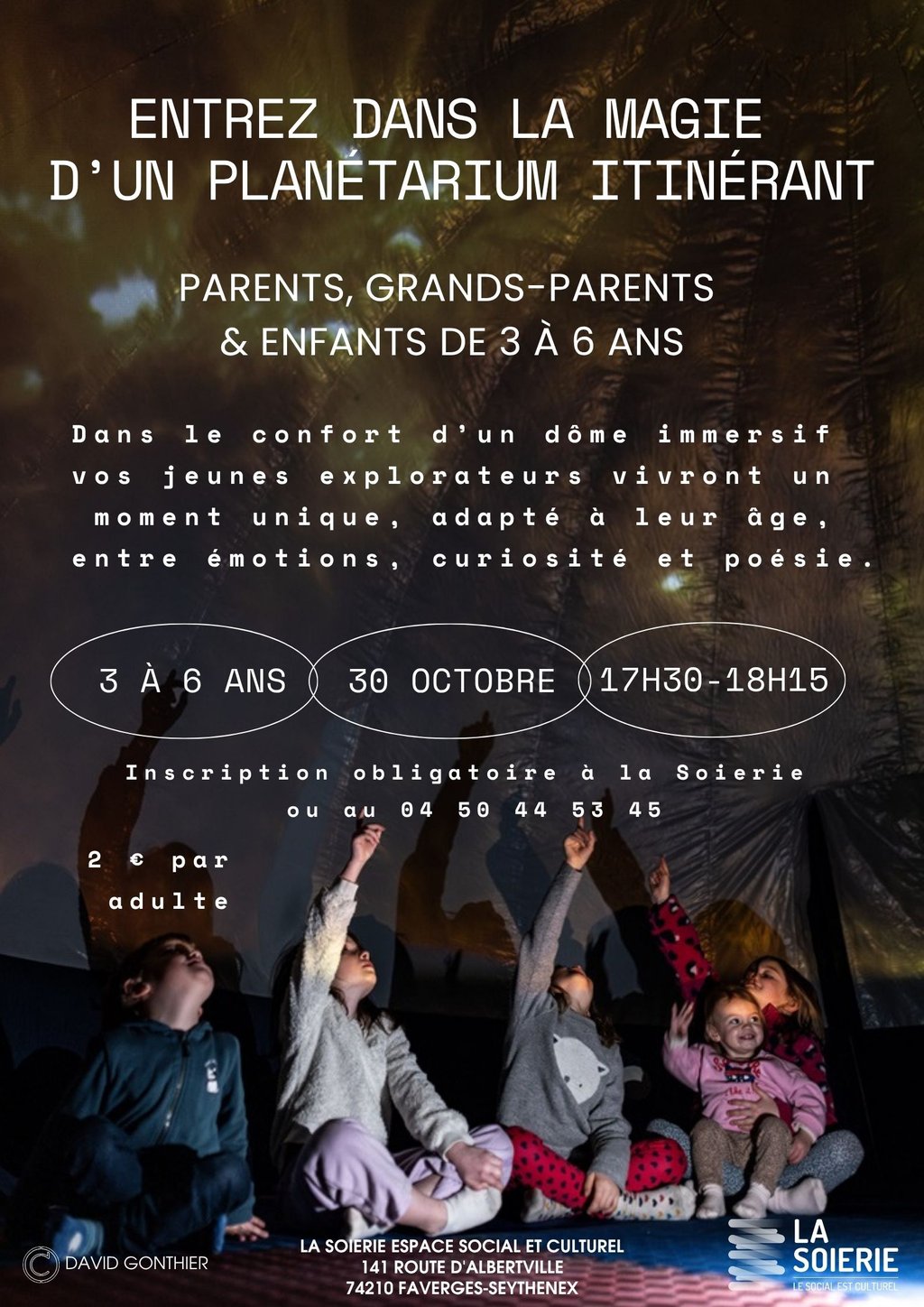 Dans le confort d'un dôme immersif, vos jeunes explorateurs vivrons un moment unique, adapté à leur âge, entre émotions, curiosité et poésie!